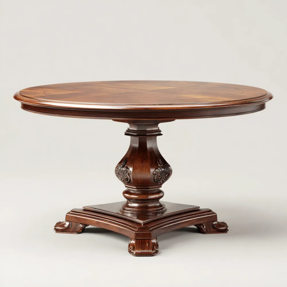 Runder Esstisch Massivholz 120x120x75 cm – Dunkelbraun – Klassisches Design
