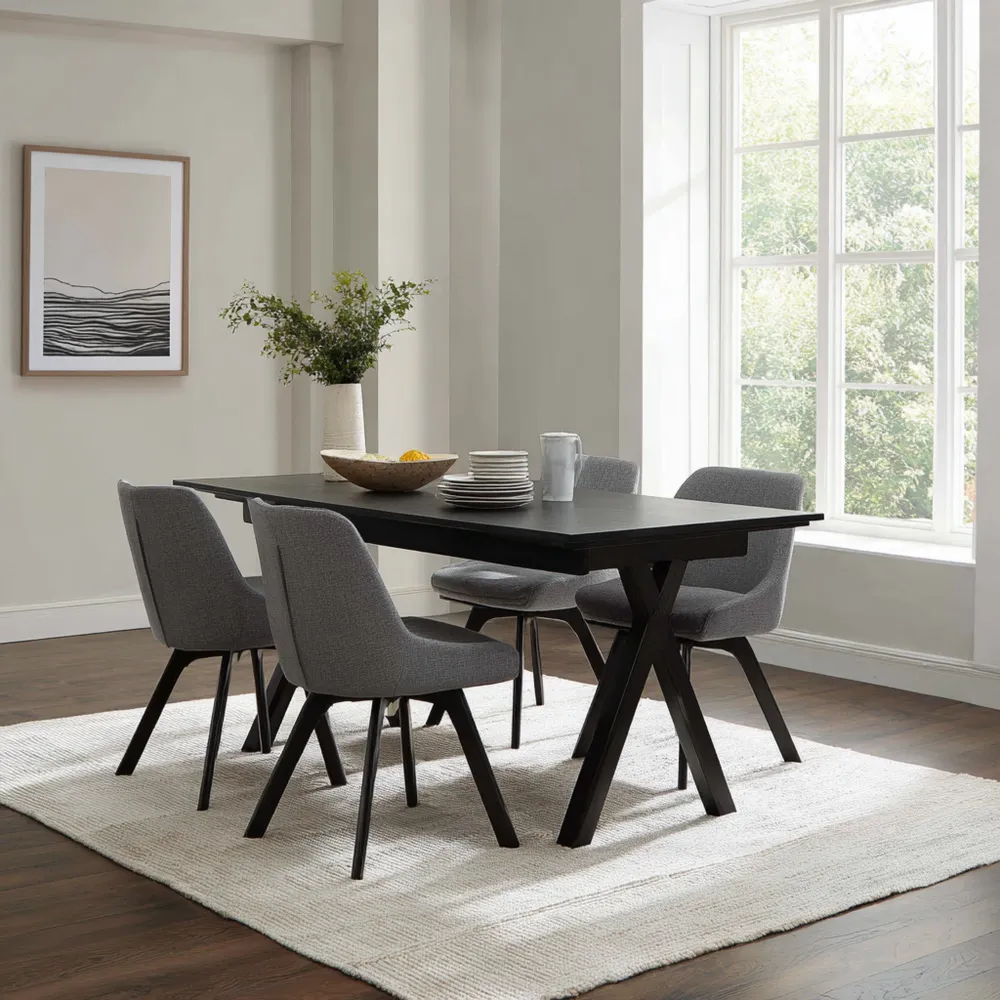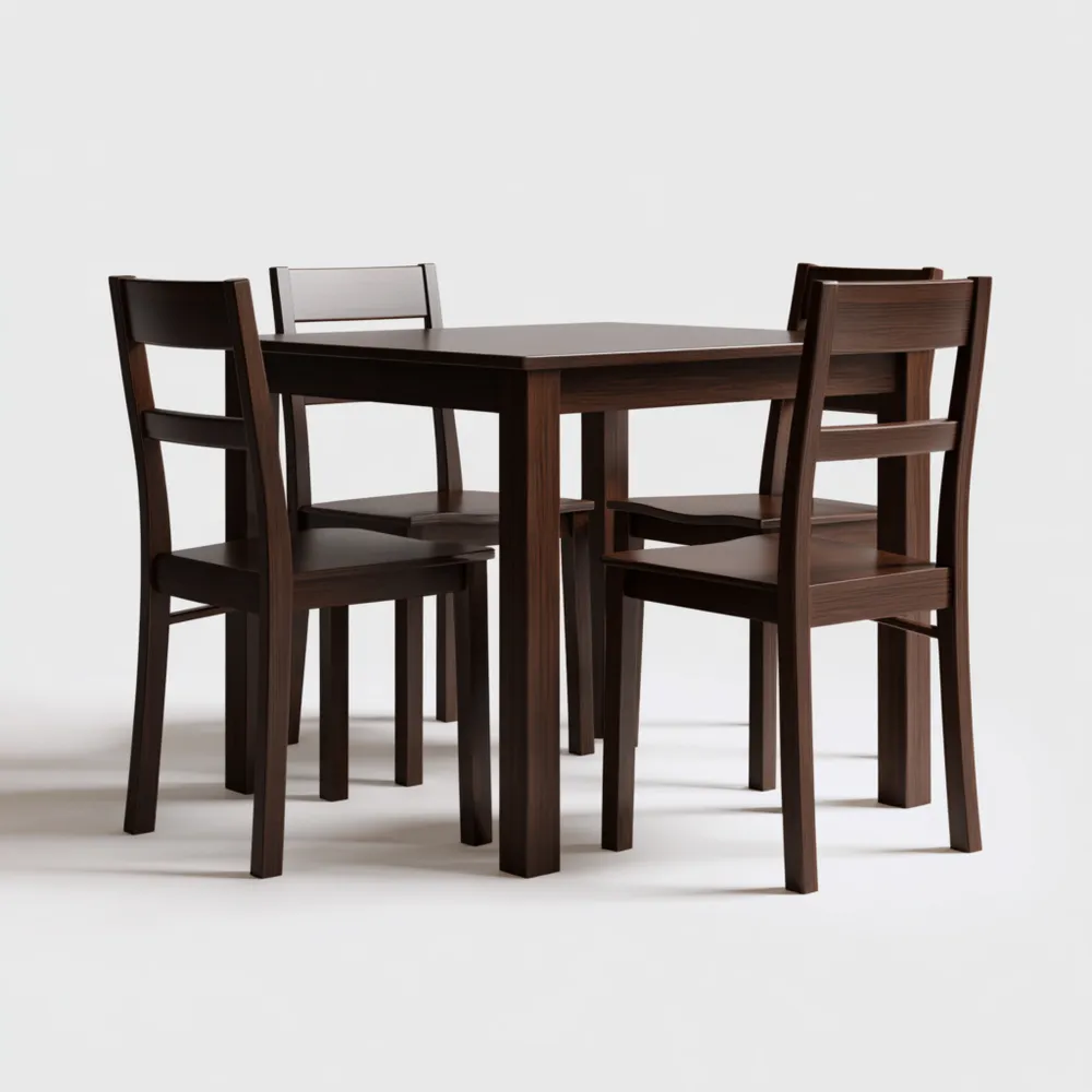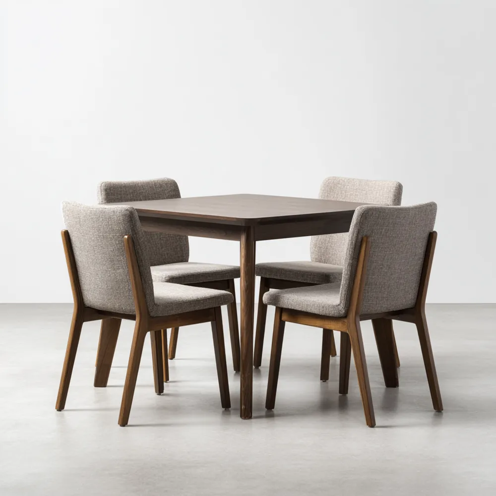 Esszimmer-Set Massivholz 4 Stühle 80x80x75 cm – Dunkelbraun/Neutral Grau – Skandinavisch