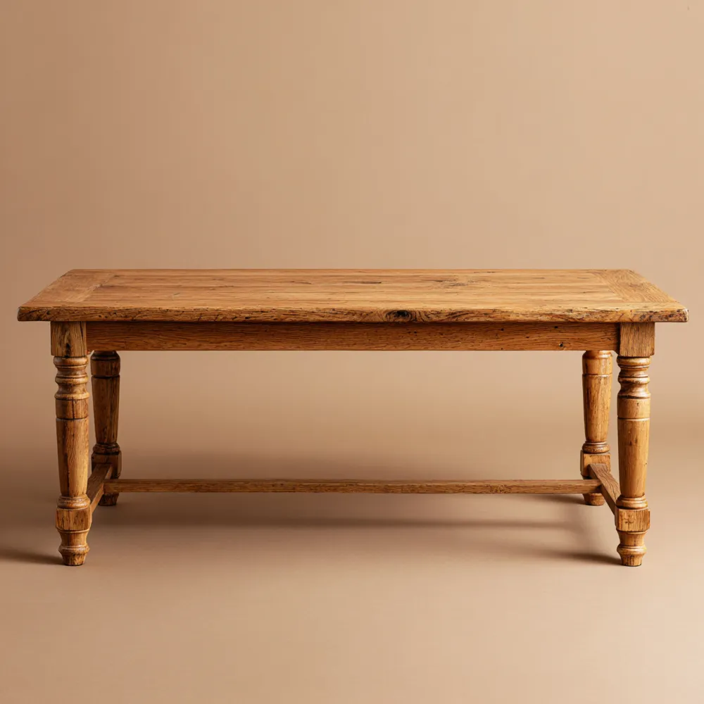 Material und VerarbeitungDer Tisch besteht aus hochwertigem Eichenholz, das bekannt ist für seine Langlebigkeit und robuste Struktur. Die warme Holzfarbe verleiht jedem Raum eine einladende Atmosphäre.