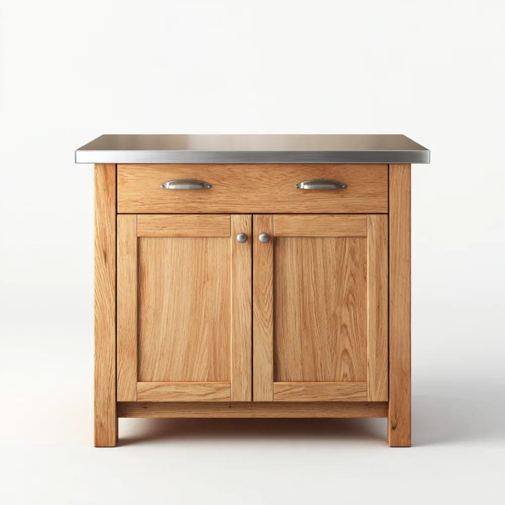 Material und VerarbeitungDie Kücheninsel besteht aus hochwertigem Eichenholz, das für seine Langlebigkeit und natürliche Schönheit bekannt ist. Die Oberfläche ist mit einem schützenden Lack überzogen, um die Haltbarkeit zu erhöhen.